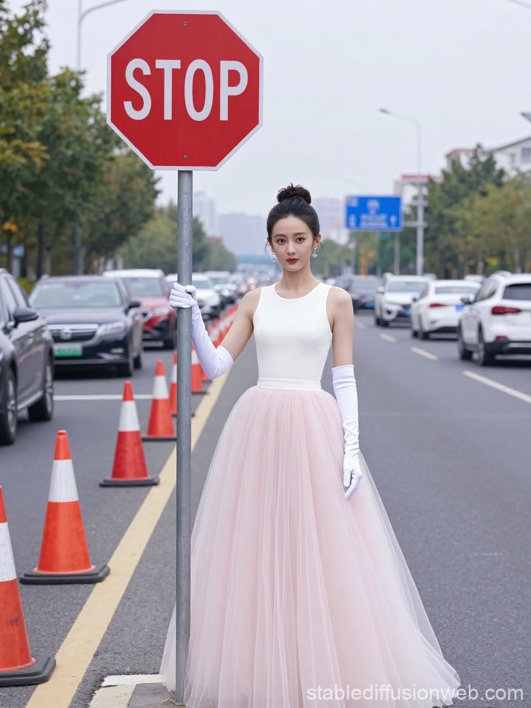 Steffani adjusted the white elbow-length gloves on her arms, careful not to snag the delicate fabric against the limo's leather seats. Her beehive hairdo, a towering masterpiece of hairspray and pins, bobbed slightly as she leaned forward to peer out the tinted window. She looked every bit the prom queen in her sleeveless tank formal gown-the white bodice hugging her figure perfectly, flaring out into a light pink tulle skirt that whispered against her legs with every shift. Beside her sat her date, Alex, handsome in his tux, chatting animatedly with the two other couples crammed into the spacious interior. Laughter filled the air, mixed with the faint pop of a champagne cork someone had snuck in. But the excitement ground to a halt as the limo slowed, then stopped entirely. Traffic bunched up ahead like a tangled necklace, horns blaring in frustration. Up front, a construction worker stood firm in the chaos, his orange safety vest glowing under the streetlights, paired with a simple blue shirt and worn jeans. In his hands, he gripped a sign that read "STOP" in bold red letters. Two lanes were closed off, cones and barriers funneling cars into a single sluggish stream. Steffani sighed dramatically, pressing her gloved hand against the window. "This is ridiculous," she muttered. "We're going to be late for prom at this rate. I wish I could do something about it-just wave a wand and make it all go faster."