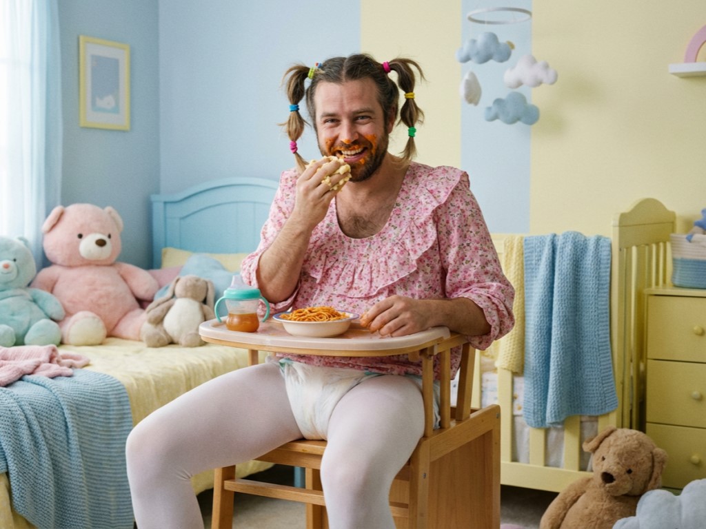 In the quaint town of Eldridge, nestled between rolling hills and whispering pines, whispers of the Role Swapper began to spread like wildfire one misty autumn evening. The entity was said to be ethereal, a shimmering apparition that could only be glimpsed in the corner of one's eye-a fleeting shadow that twisted fates with a mere brush of its invisible hand. No one knew where it came from or why it chose certain souls, but when it descended upon the town, chaos ensued in subtle, unpredictable waves. Not everyone was touched by its magic. Most citizens woke up the next morning as their ordinary selves, grumbling about the strange fog that had blanketed the streets overnight. But a handful were forever altered. Old Mr. Hargrove, the stern librarian, suddenly pranced about with the exuberance of a circus clown, juggling books and honking an imaginary nose. Mrs. Patel, the no-nonsense schoolteacher, began barking orders like a drill sergeant, her voice booming across the playground. And young Timmy, the baker's apprentice, adopted the haughty demeanor of a Victorian duchess, sipping tea with his pinky extended and turning up his nose at fresh loaves. Amid the bewilderment, Juan Ramirez saw opportunity. A middle-aged mechanic with callused hands and a perpetual grease stain on his forehead, Juan had always dreamed of escaping the grind of oil changes and engine repairs. That night, as the town buzzed with tales of the swaps, he turned to his wife, Maria, in their modest kitchen lit by a flickering bulb. "What if I pretend to be swapped with a baby?" Juan said, his eyes gleaming with mischief. Maria, stirring a pot of arroz con pollo, paused and stared at him like he'd grown a second head. "You're crazy, Juan. Absolutely loco," she replied, shaking her head. Maria was practical, a seamstress who mended clothes for half the town, her fingers nimble but her patience thin. But Juan leaned in, his voice dropping to a conspiratorial whisper. "Think about it, mi amor. The Role Swapper transformed me-that's what we'll say. I'll act like an infant, helpless and cooing. The government-they're already talking about aid for the affected. Disability benefits, support programs. We could live off that. No more backbreaking work. We'd never have to lift a finger again."