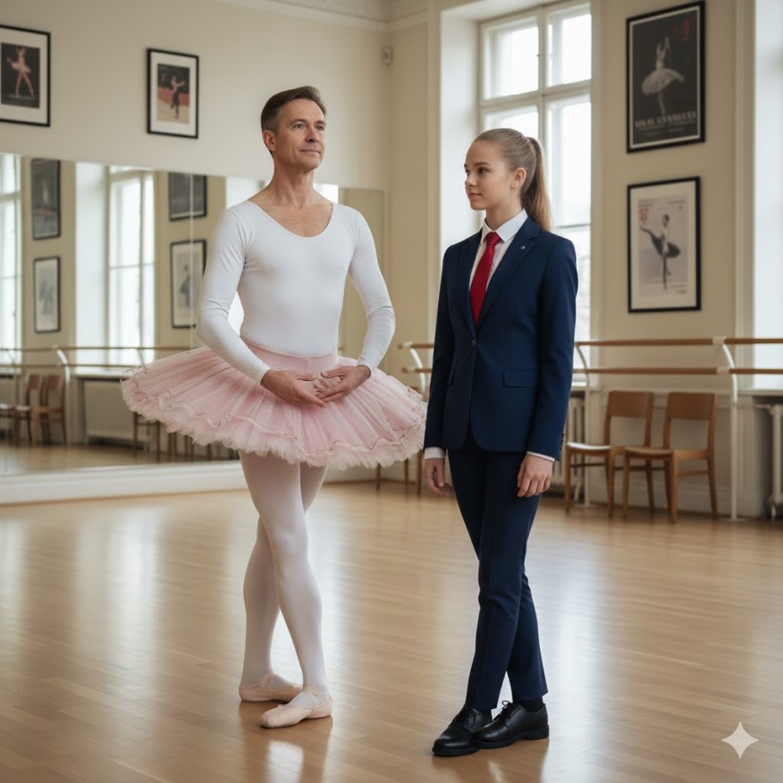 Samuel pulled into the parking lot of the Enchanted Steps Dance Studio, the late afternoon sun casting long shadows over the brick building. At 42, he was a dedicated project manager at a bustling tech firm, his days filled with spreadsheets, meetings, and the quiet satisfaction of closing deals. But his real pride was his 18-year-old daughter, Hannah-a prodigy on the dance floor, or so everyone said. He adjusted his tie in the rearview mirror, then headed inside, the faint echo of piano music and rhythmic thuds greeting him. The studio's lobby was a whirlwind of tutus and leotards, parents chatting while kids stretched on the floor. Samuel found a spot near the viewing window, watching Hannah glide through her advanced ballet class. Her movements were flawless-extensions sharp, turns precise-but he noticed the spark was missing from her eyes. When class ended, she trudged out, her pink dance bag slung over her shoulder, sweat-dampened hair escaping her bun. "Hey, kiddo," Samuel said, pulling her into a hug. "You looked amazing out there. That pirouette? Chef's kiss." Hannah forced a smile, but it didn't reach her eyes. "Thanks, Dad. Can we talk? Somewhere quiet?" They found a secluded bench in the outer lobby, away from the post-class chatter. Hannah fidgeted with the strap of her bag. "Dad, I... I want to quit dance. It used to be fun, but now it feels more like a job. Rehearsals every day, sore feet, pressure to be perfect. I'm over it."